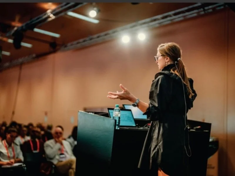 Dr. Jen Romano speaking at UX conference